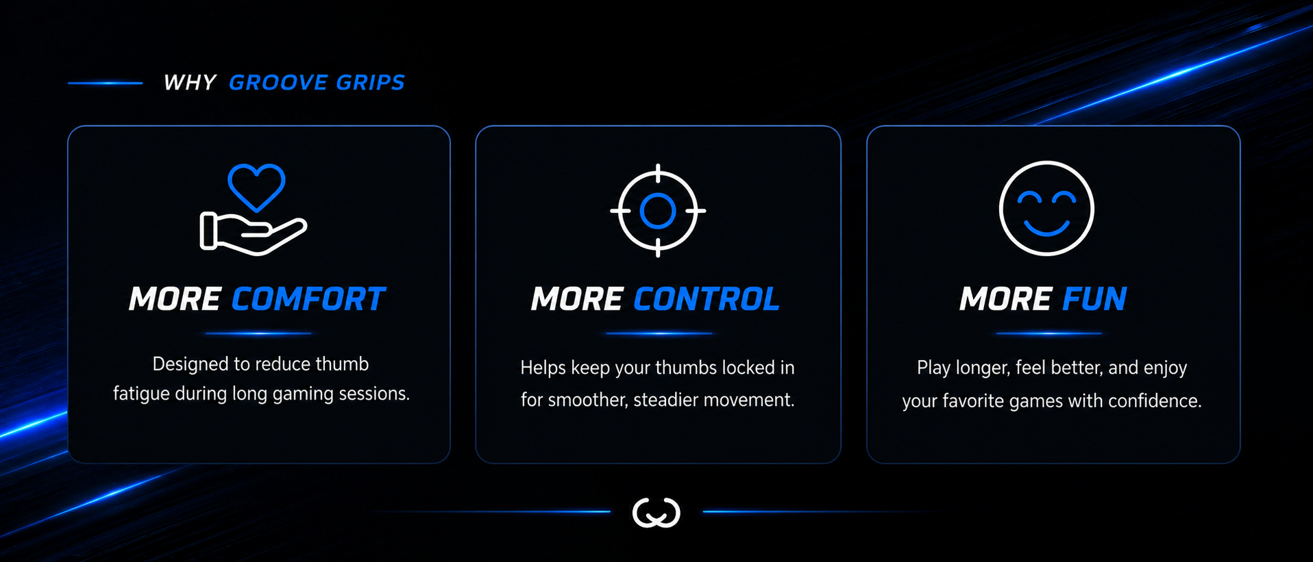 Groove Grips were made to stop thumbs from slipping (TOTALLY ANNOYING) and providing more comfort, control and confidence so all gamers could have more fun!
